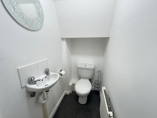 Upon entering, you are greeted by a welcoming entrance hall that leads to a convenient ground floor WC. The heart of the home is the spacious living dining room, which features an open plan staircase that elegantly connects to the first floor. This area is perfect for entertaining guests or enjoying family time, providing a warm and inviting atmosphere.