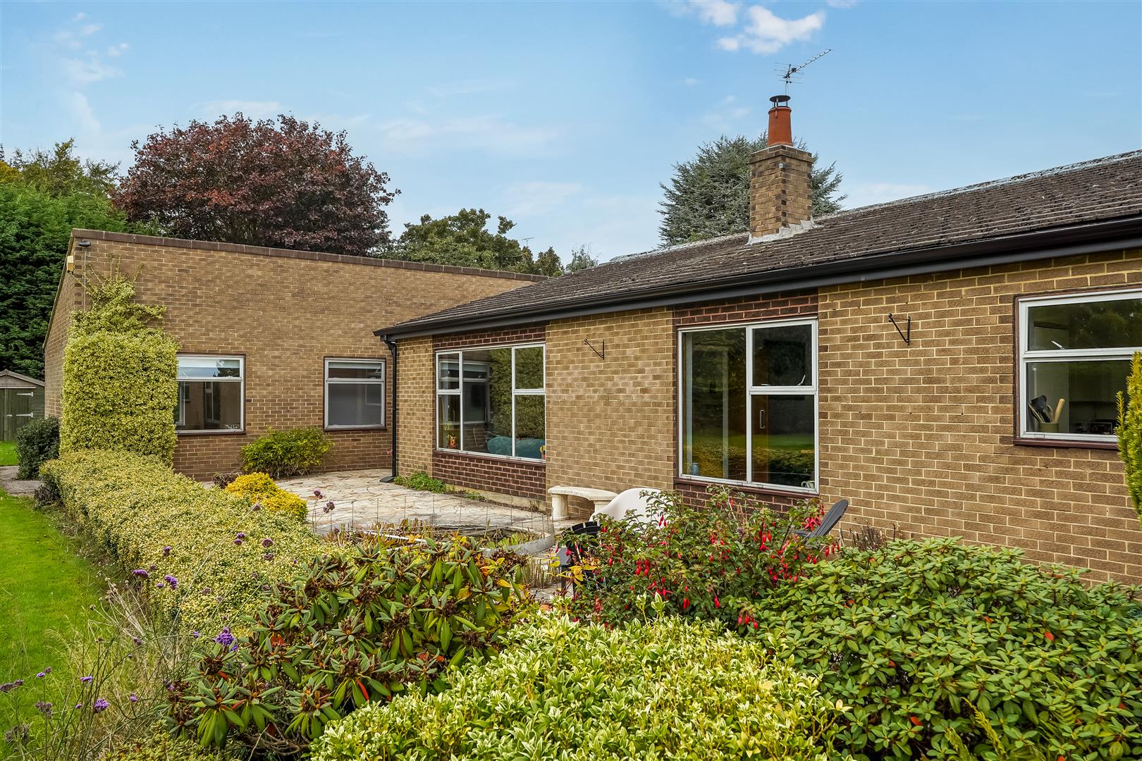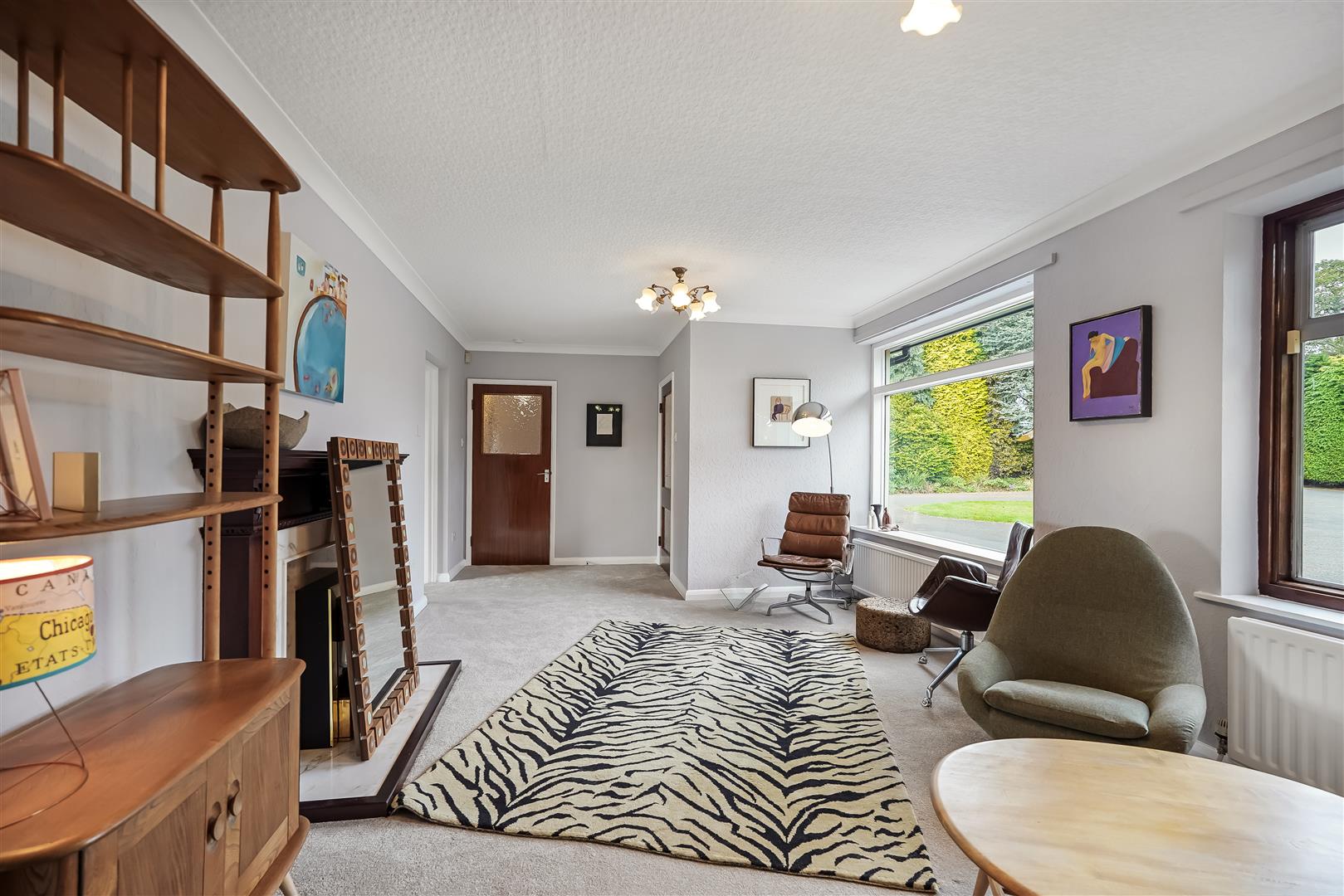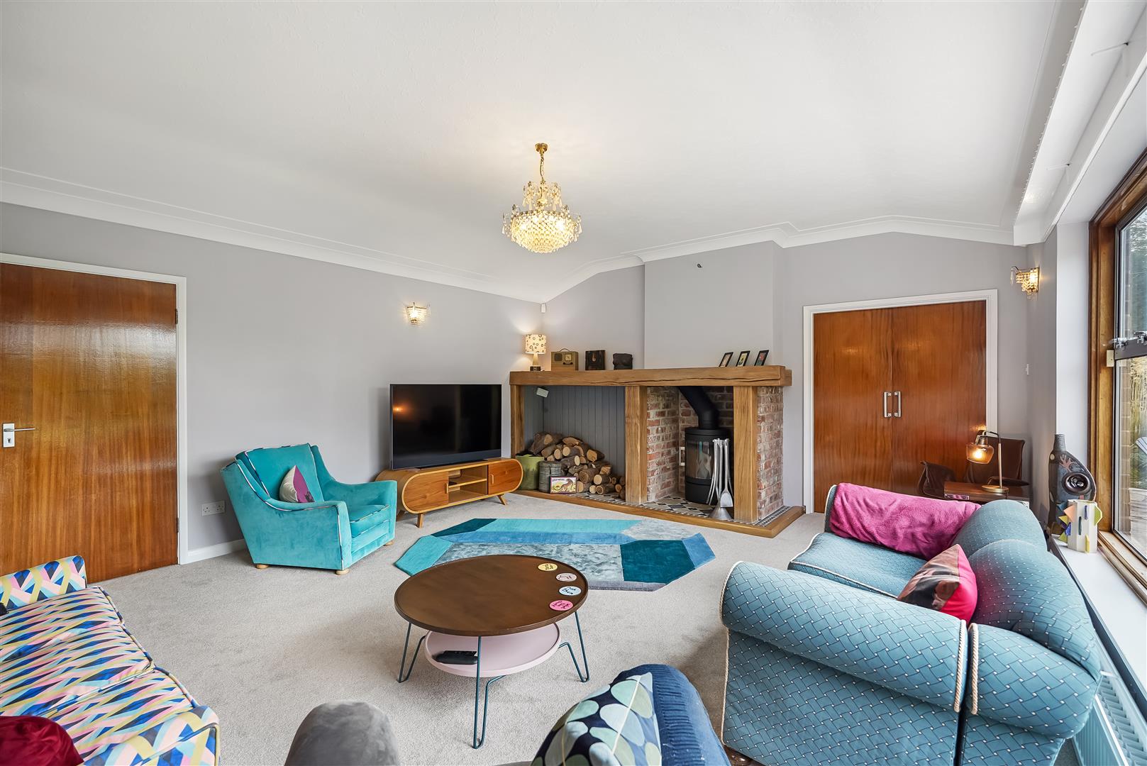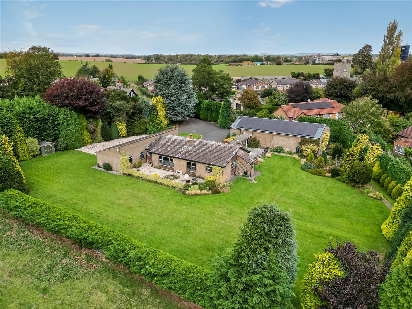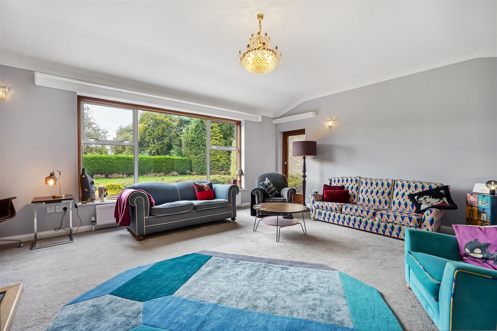 Internal accommodation consists of an entrance lobby leading to a spacious hallway/reception room, relaxing living room with huge windows and solid fuel fire and huge windows overlooking the expansive landscaped gardens, south facing patio area and fish pond. The adjacent dining room leads to a vintage style kitchen, utility room, pantry, WC and boiler room complete the east side of the home.