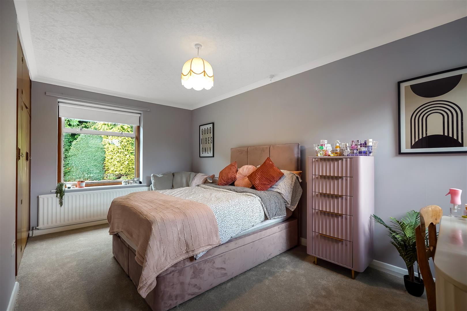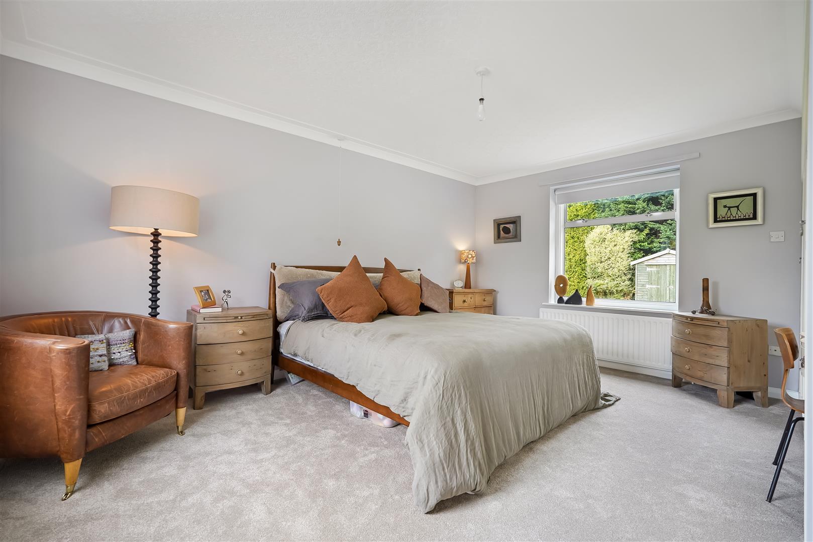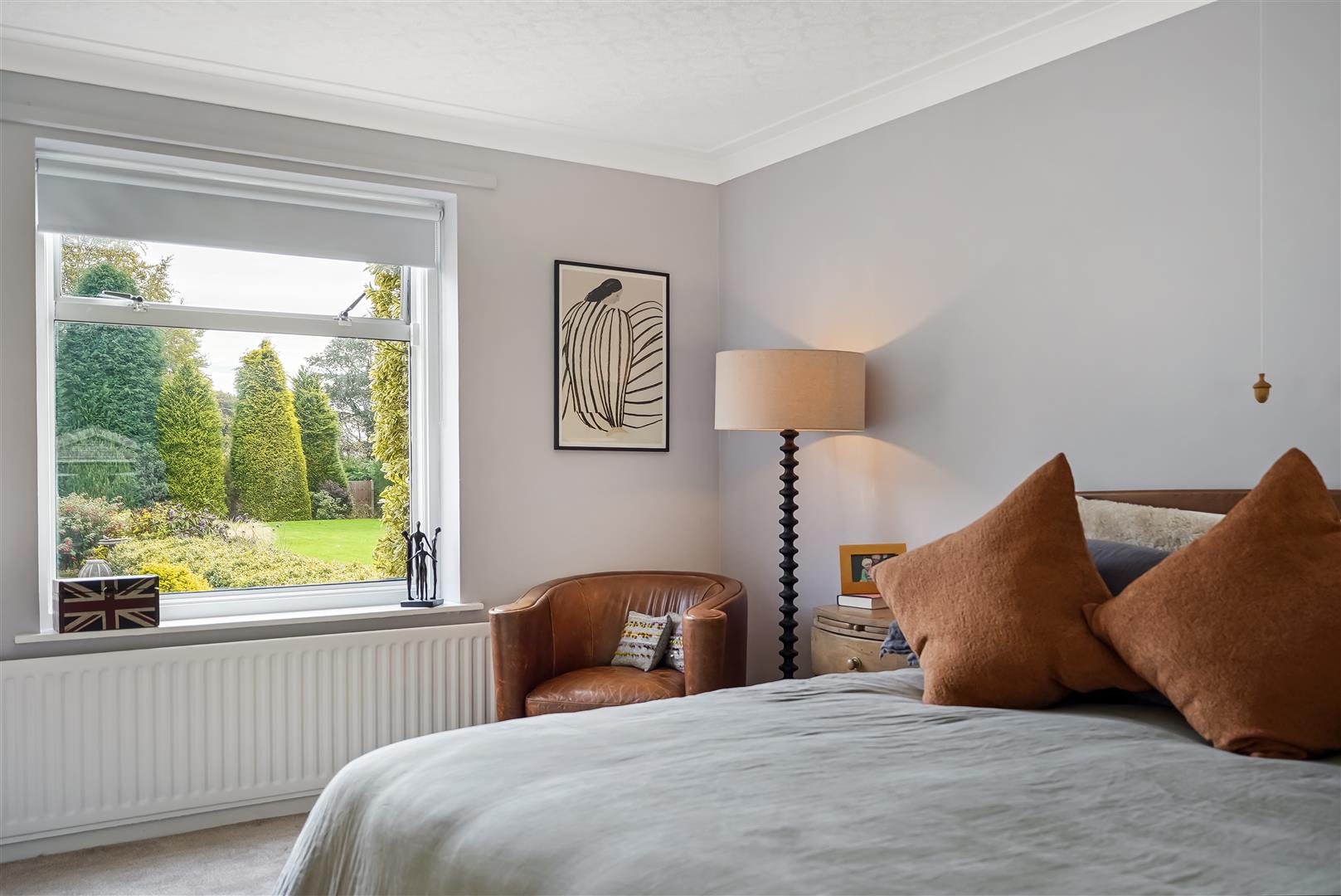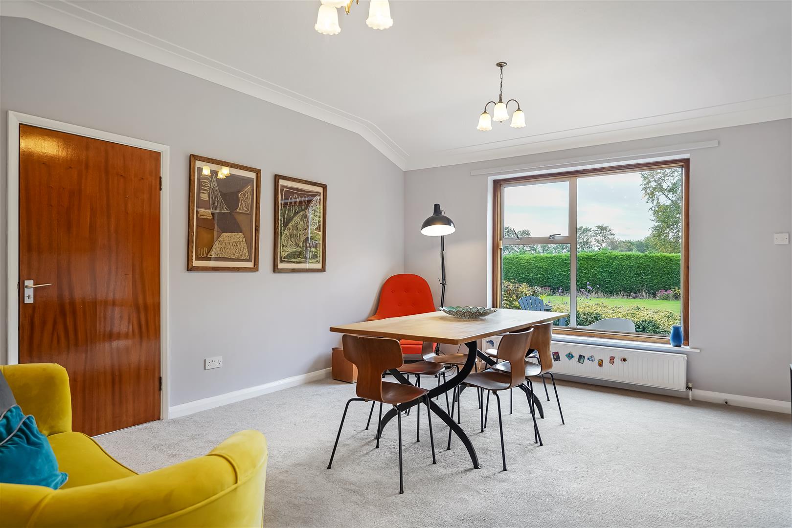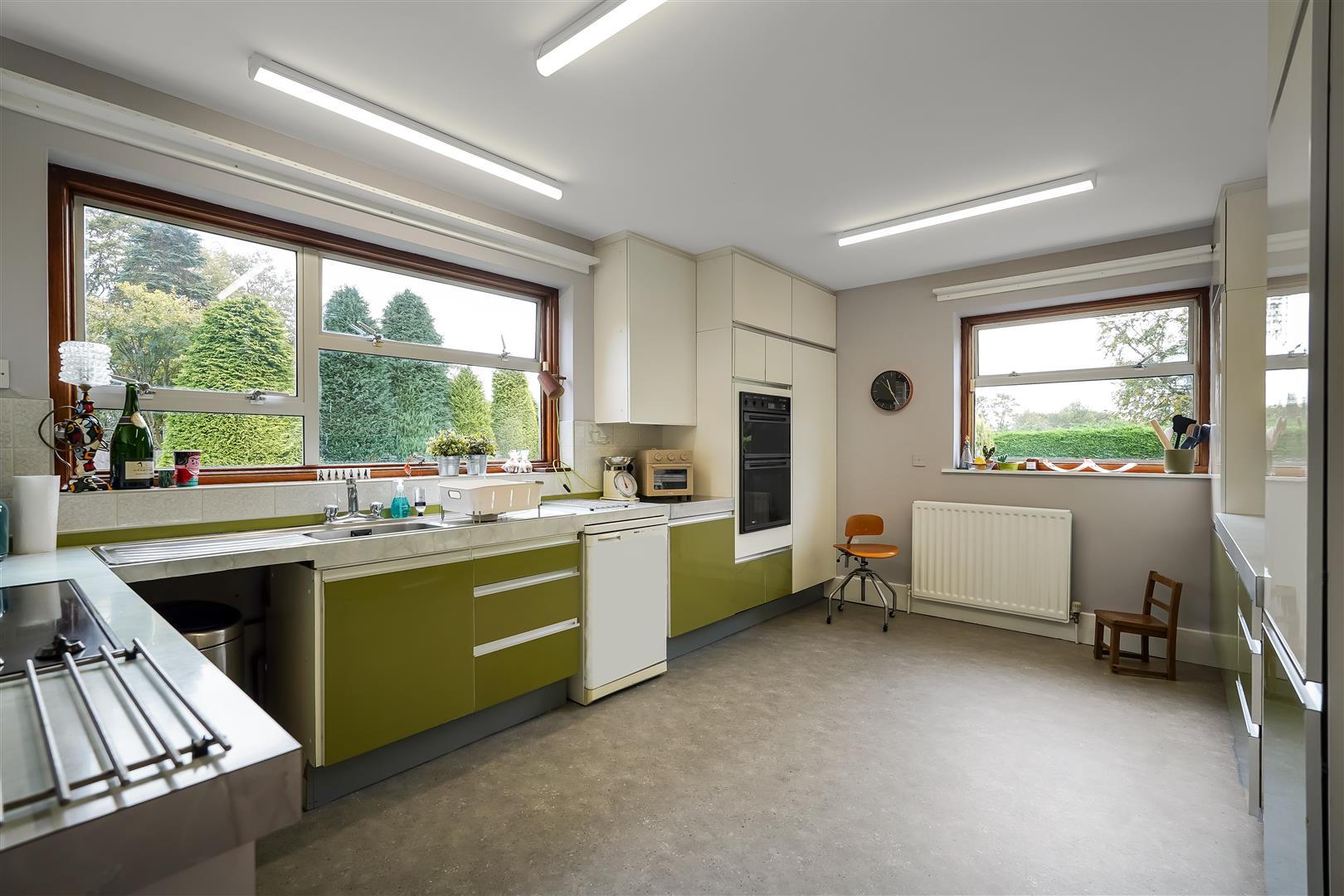 Internal accommodation consists of an entrance lobby leading to a spacious hallway/reception room, relaxing living room with huge windows and solid fuel fire and huge windows overlooking the expansive landscaped gardens, south facing patio area and fish pond. The adjacent dining room leads to a vintage style kitchen, utility room, pantry, WC and boiler room complete the east side of the home.