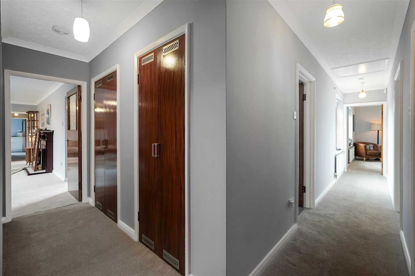The west wing of the property holds a shower room, bathroom and four well sized double bedrooms, two of which enjoy dual aspect windows making the most of the stunning gardens and unobstructed country views beyond. All four bedrooms boast built in wardrobes. This side of the property also features two good sized airing cupboards and a large cloakroom.