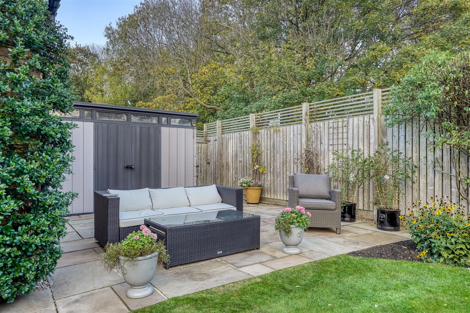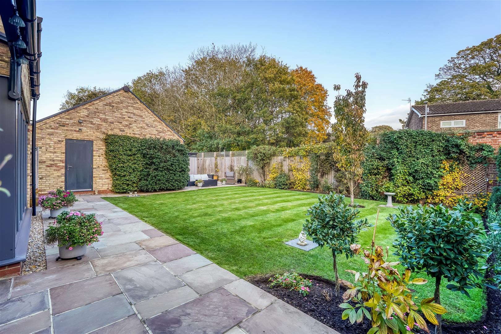 Striking in design, the home combines brick, render and art stone with modern grey windows and bi-folding doors opening to a private, landscaped garden. The current owners have enhanced the property with professional landscaping and a veranda, creating a superb year-round entertaining space.