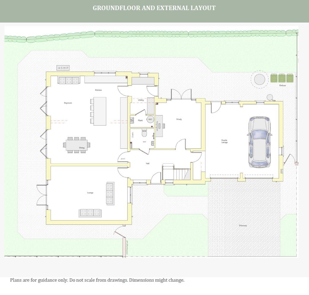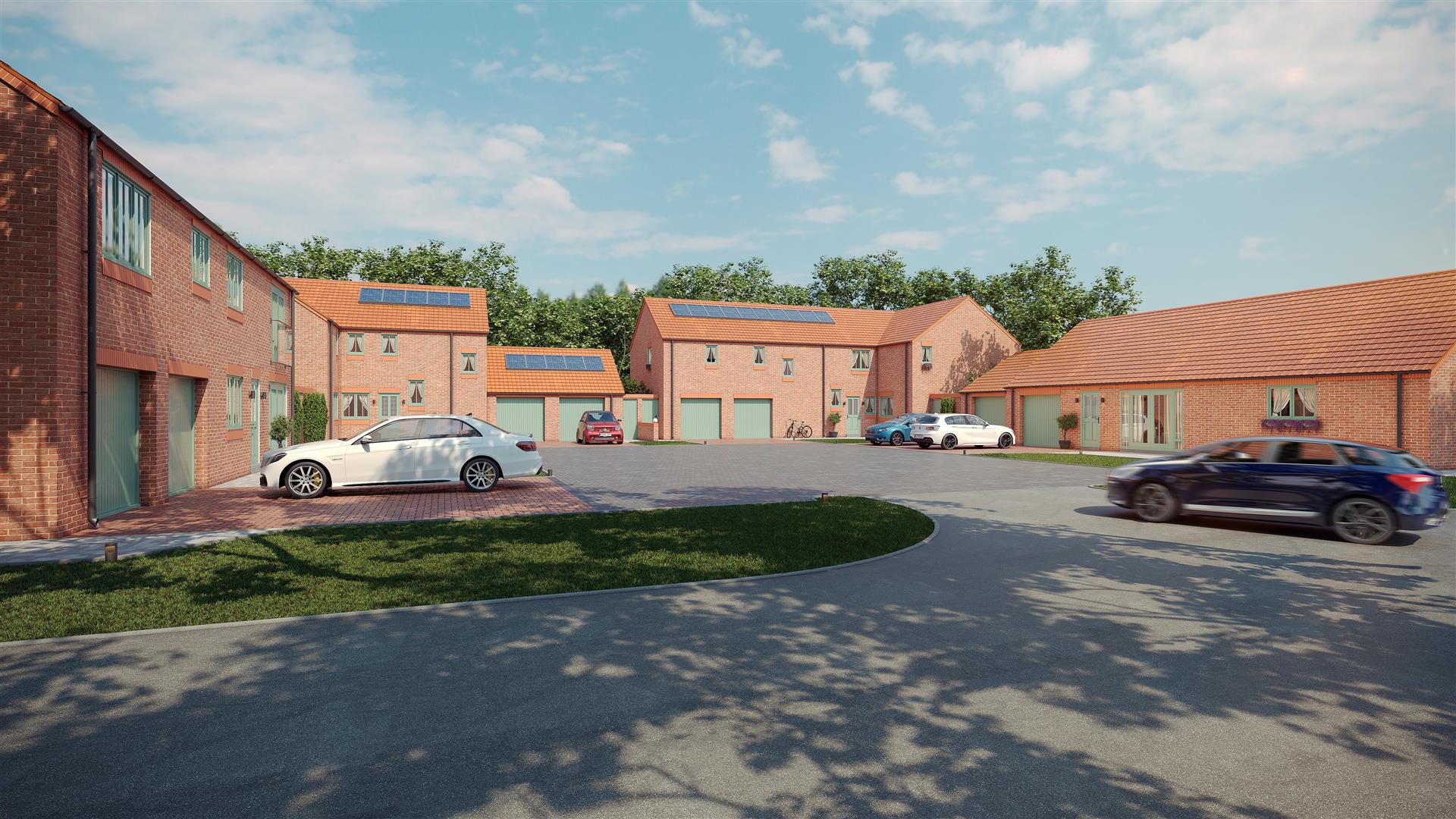 The Cowton is an outstanding large new build family home which will be constructed to a high specification blending environmentally friendly, sustainable living from solar panels and air source heat pump and providing luxurious and modern open plan living accommodation. The spacious accommodation includes a reception hall, study, spacious lounge with French doors to the rear, stunning open plan kitchen/dining/day room with bi folding doors opening to a patio and rear garden. The luxurious kitchen with island will be fitted with quartz work tops and integrated appliances to include double oven, large induction hob with extractor canopy, tall fridge, freezer, dishwasher and wine cooler. There is also a useful utility room, plant room and separate cloakroom/wc. Both the master bedroom and guest bedroom have a Juliette balcony, walk in wardrobes and en suite shower room. The walk in wardrobes to the master bedroom also have fitted wardrobes and dressing table. The two remaining bedrooms are both double rooms. There is a family bathroom/shower room and separate laundry room. Externally a shared courtyard leads to a block paved double drive providing off street parking and double garage with electric insulated doors. Front garden and rear garden and patio.