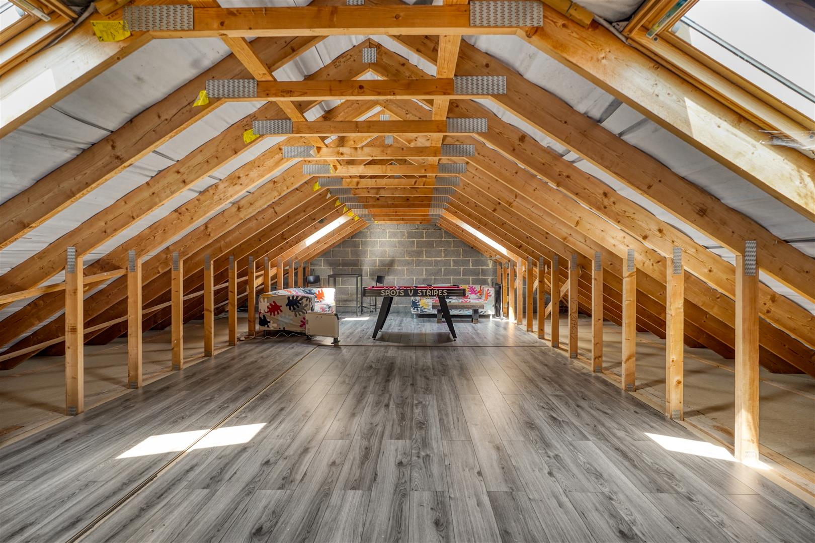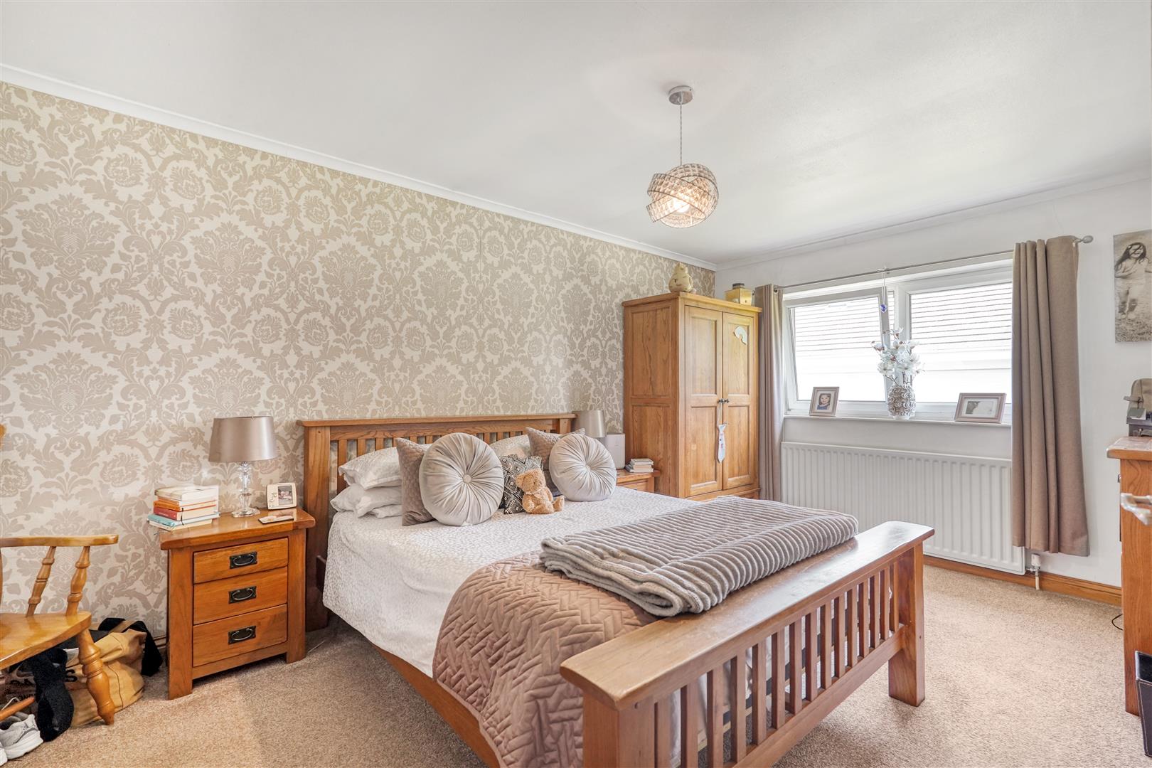 One of the standout features of this home is the private sweeping driveway leading to the double detached garage, complete with stairs giving access to the loft area, offering additional storage or potential for conversion.