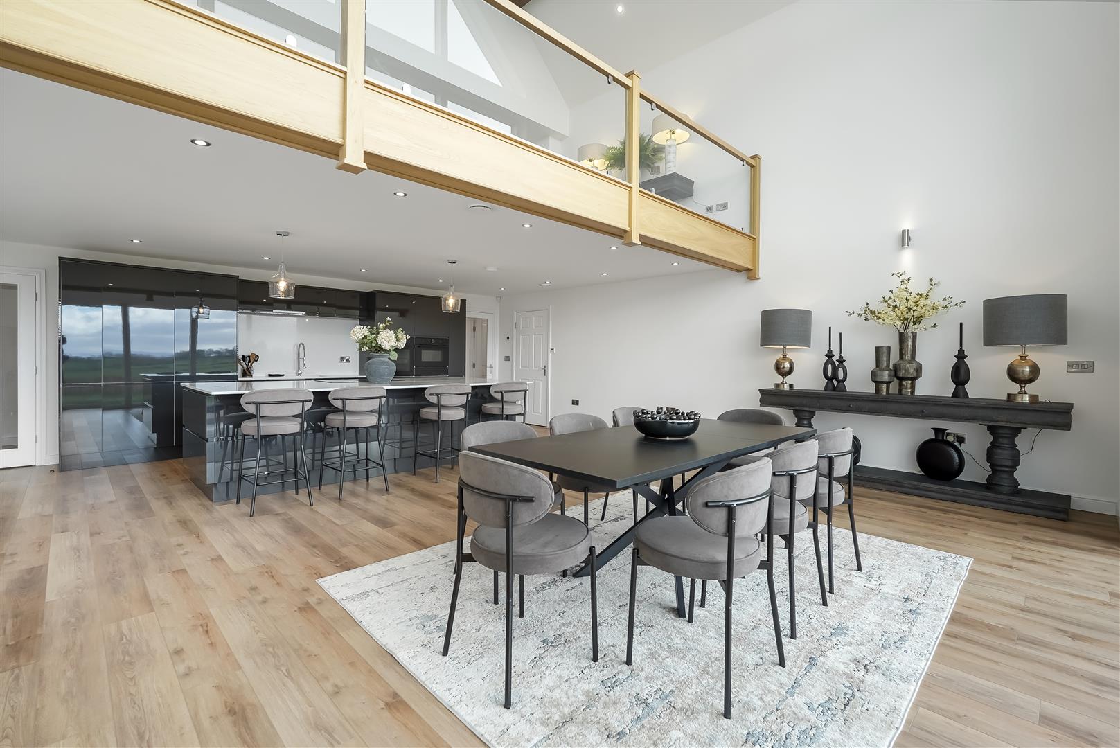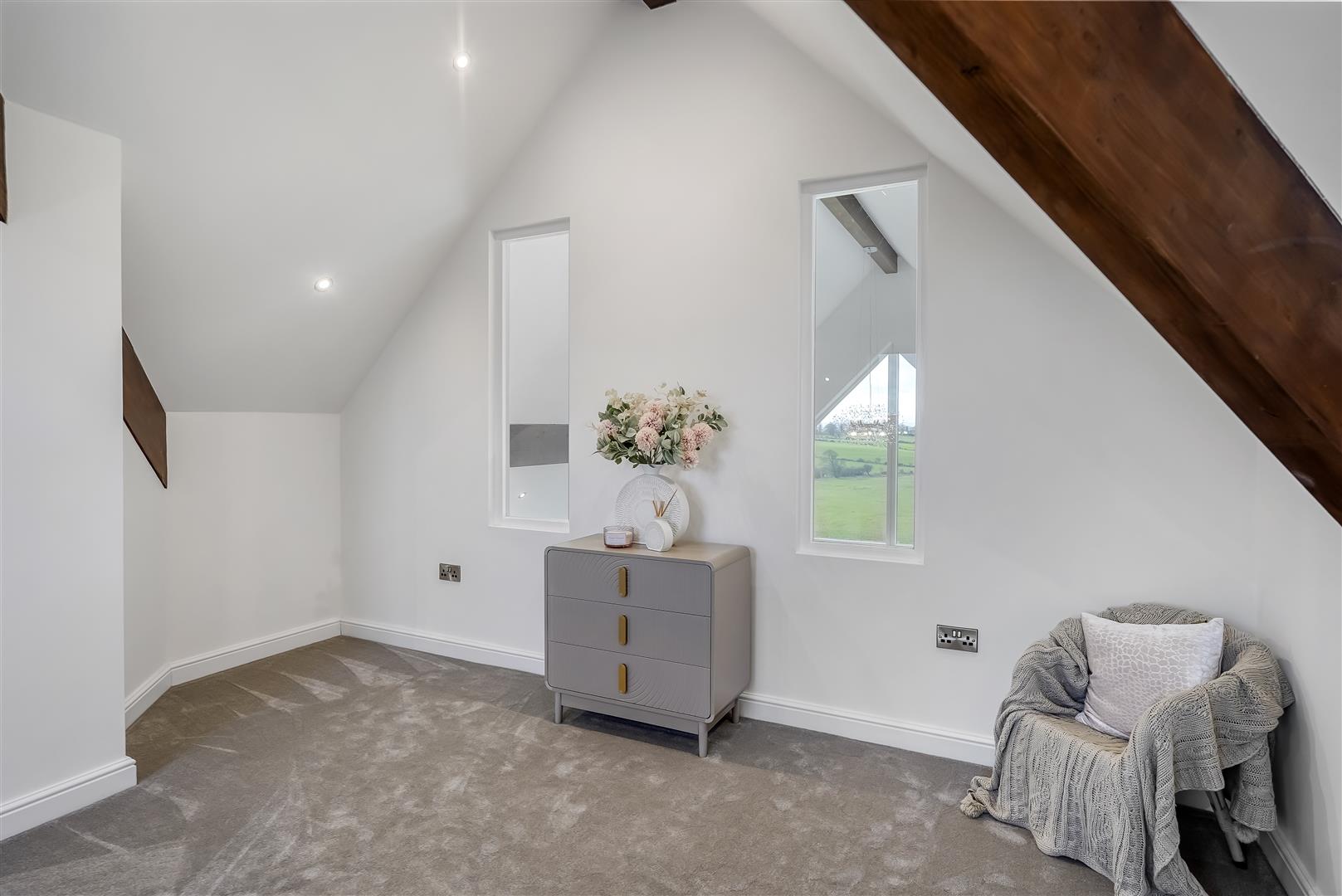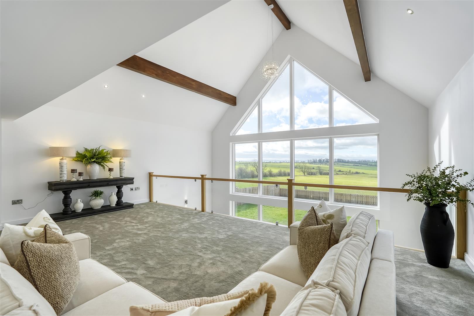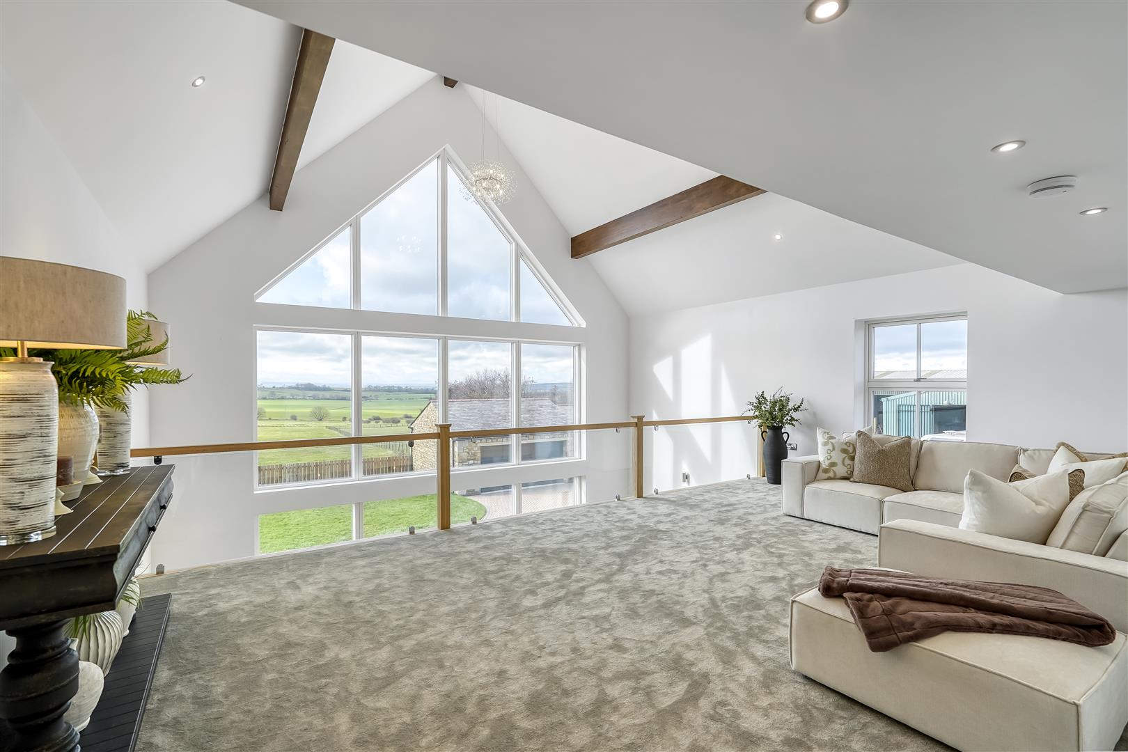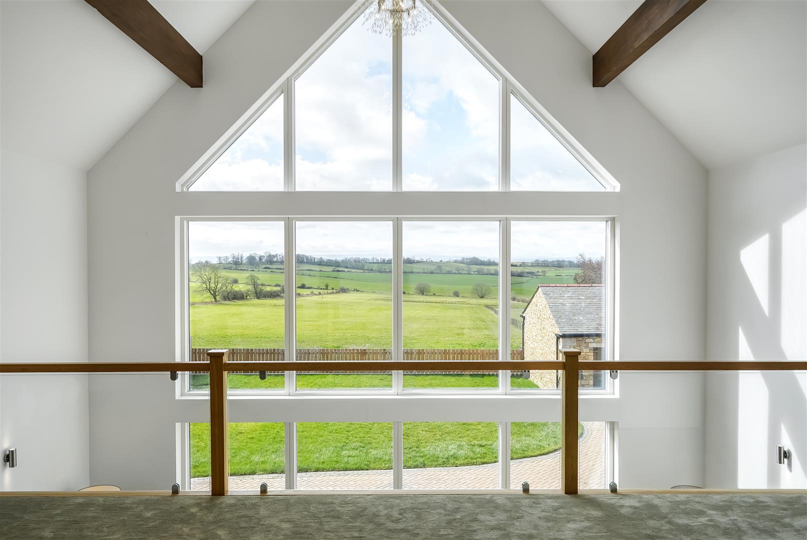 A standout feature is the striking mezzanine level, creating a wonderful sense of space and light while enjoying incredible far-reaching countryside views, an ideal retreat, workspace or relaxation area.
