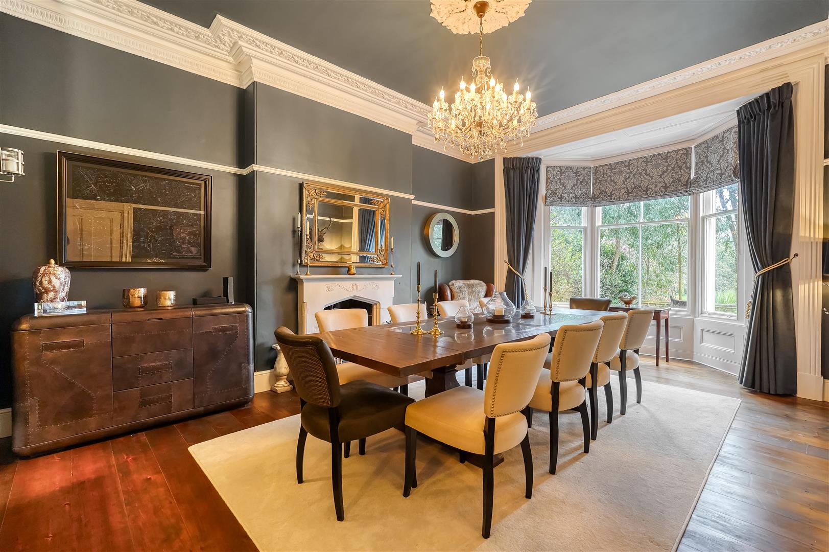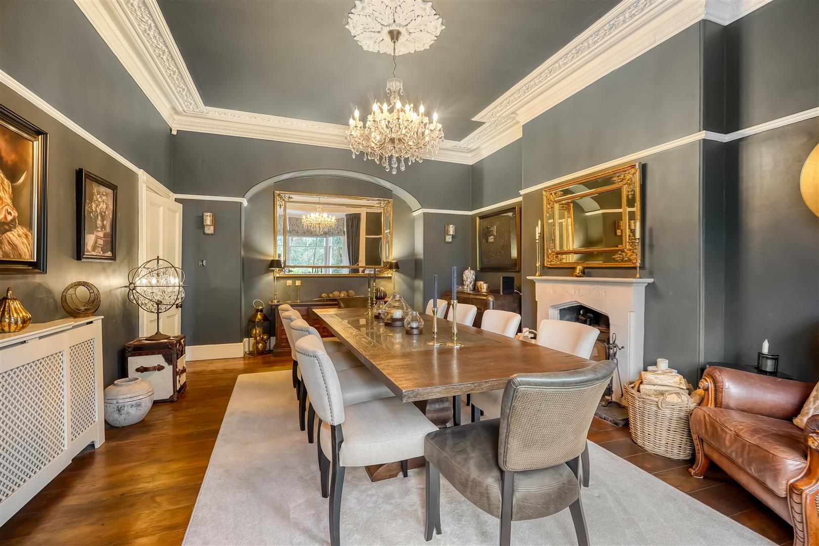 The house boasts two stunning reception rooms, a HUGE formal dining room and a large lounge room, both finished in period colors, multi fuels wood burners as focal points but also framed by those stunning views over Green Park to the rear!
