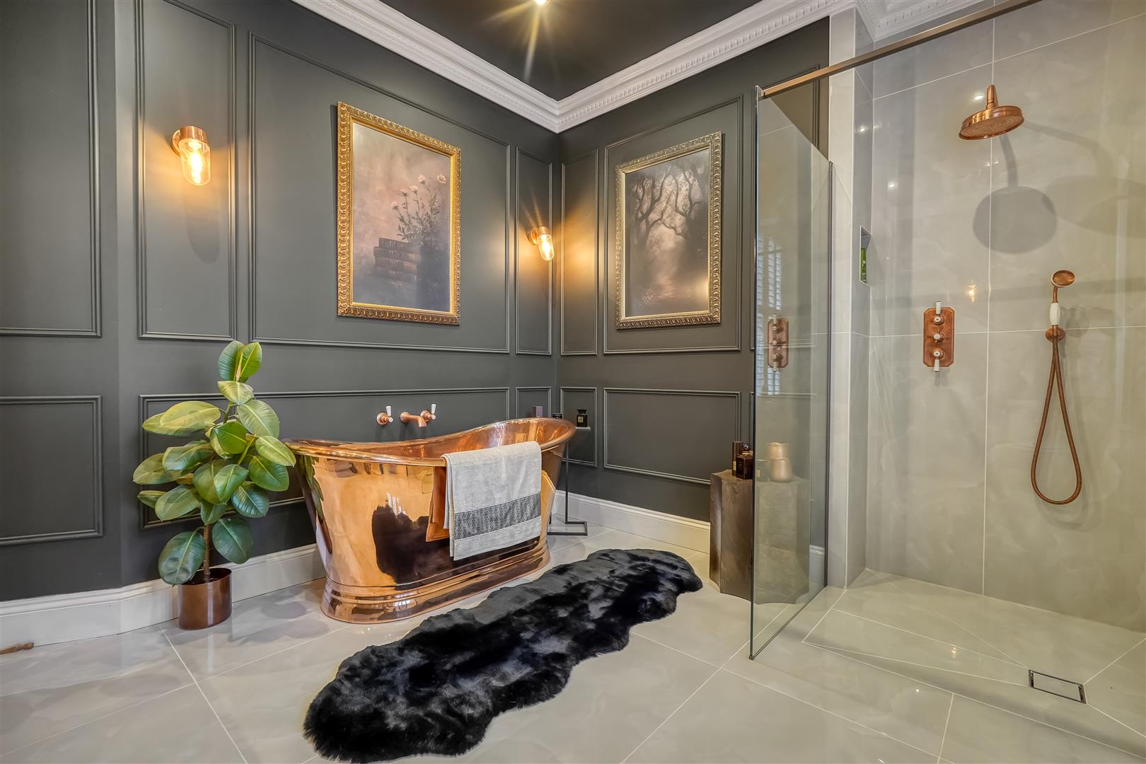 The three amazing well-appointed bathrooms ensure convenience for all residents, Two ensuite and this unbelievable family bathroom. Yes that copper bathtub proved difficult to get in but a crane and determination came good!!