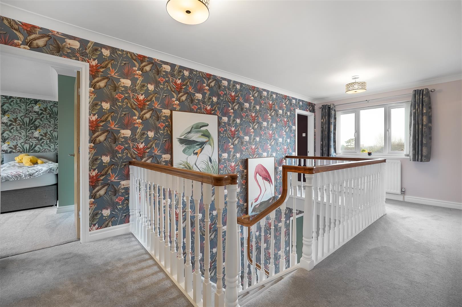 The first floor boasts a galleried landing that leads to the master bedroom, complete with an en-suite bathroom for added privacy. In addition, there are three further bedrooms, providing ample space for family or guests, along with a well-appointed family bathroom.