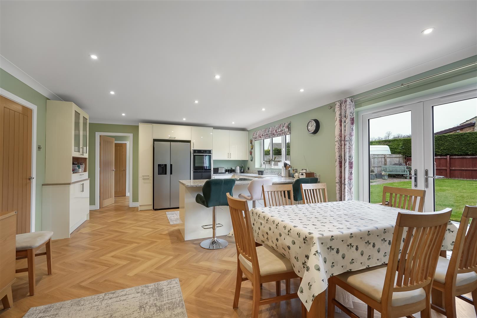 As you enter, a welcoming hall sets the tone for the rest of the home, leading to two generous reception rooms that are ideal for both relaxation and entertaining. The bespoke kitchen, with quality granite work surfaces and feature flooring, is a chef's delight, while a handy utility room adds practicality to daily life.