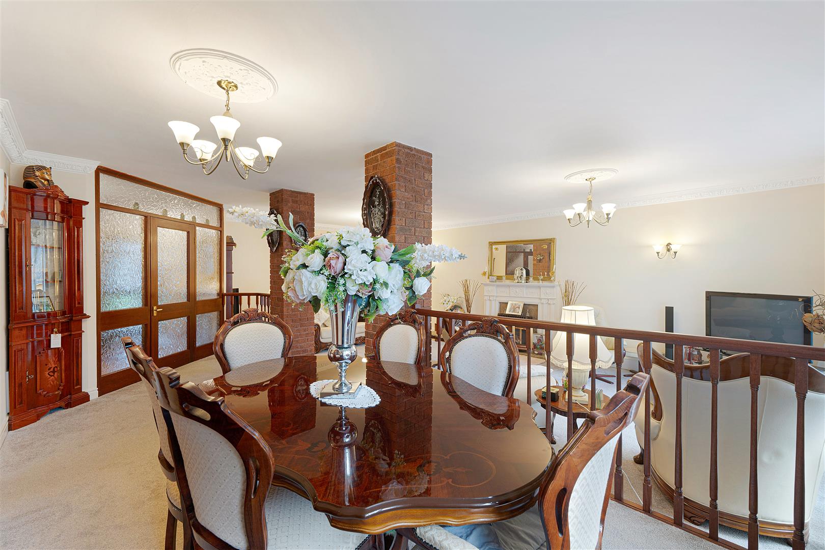 The exterior of the property is equally impressive, featuring a mature and established south-facing rear garden, complete with a well-maintained lawn and attractive borders, with sun terrace ideal for outdoor enjoyment. The double-width driveway leads to a garage equipped with an electric door, adding to the convenience of this exceptional home.