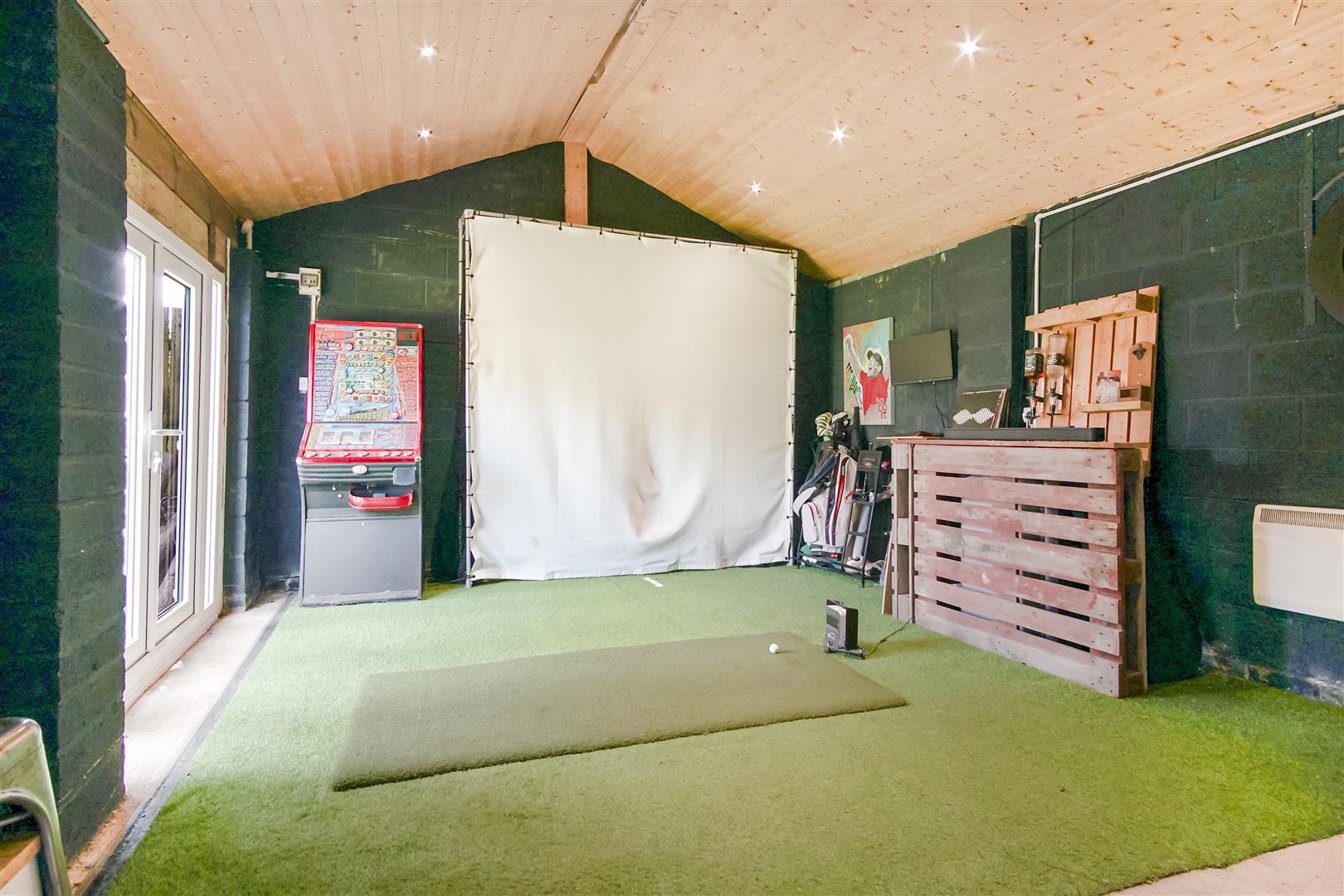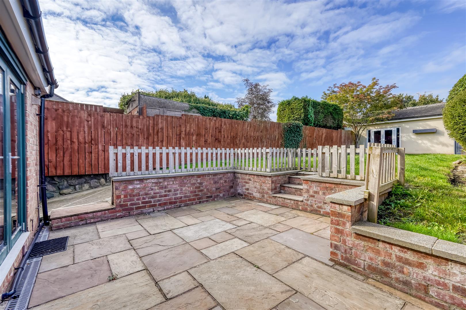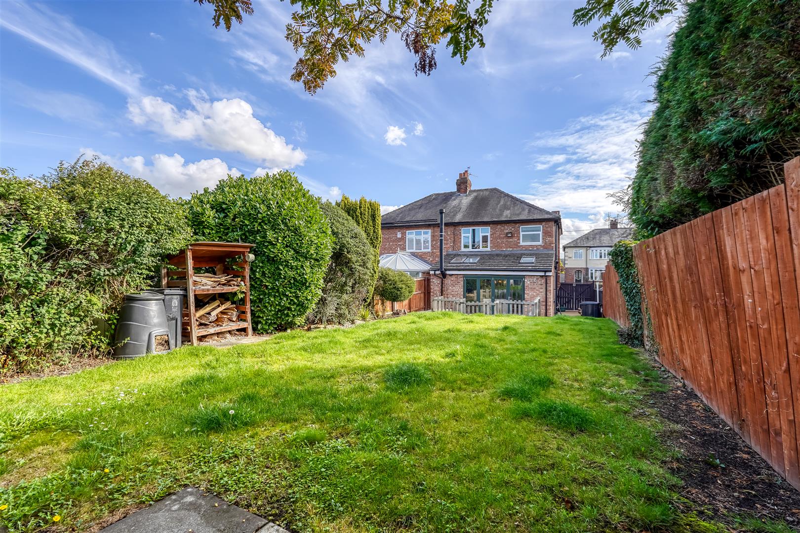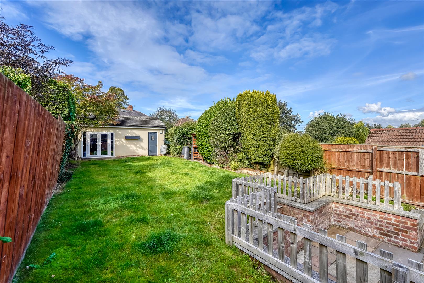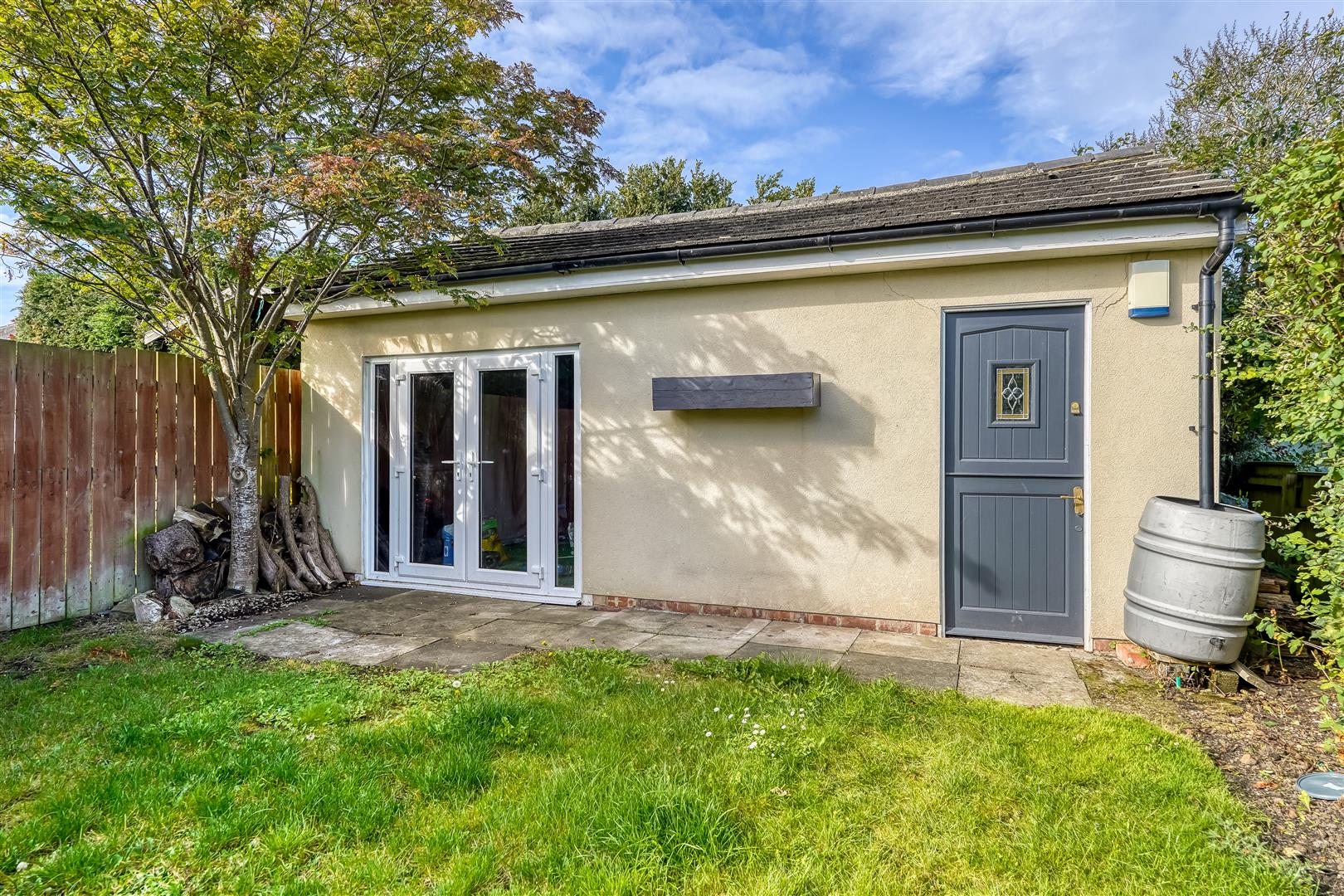 Whilst to the rear of the home, accessed via the bifold doors from the kitchen straight out onto the patio area and lawn beyond with a large summerhouse or games room at the rear of the garden