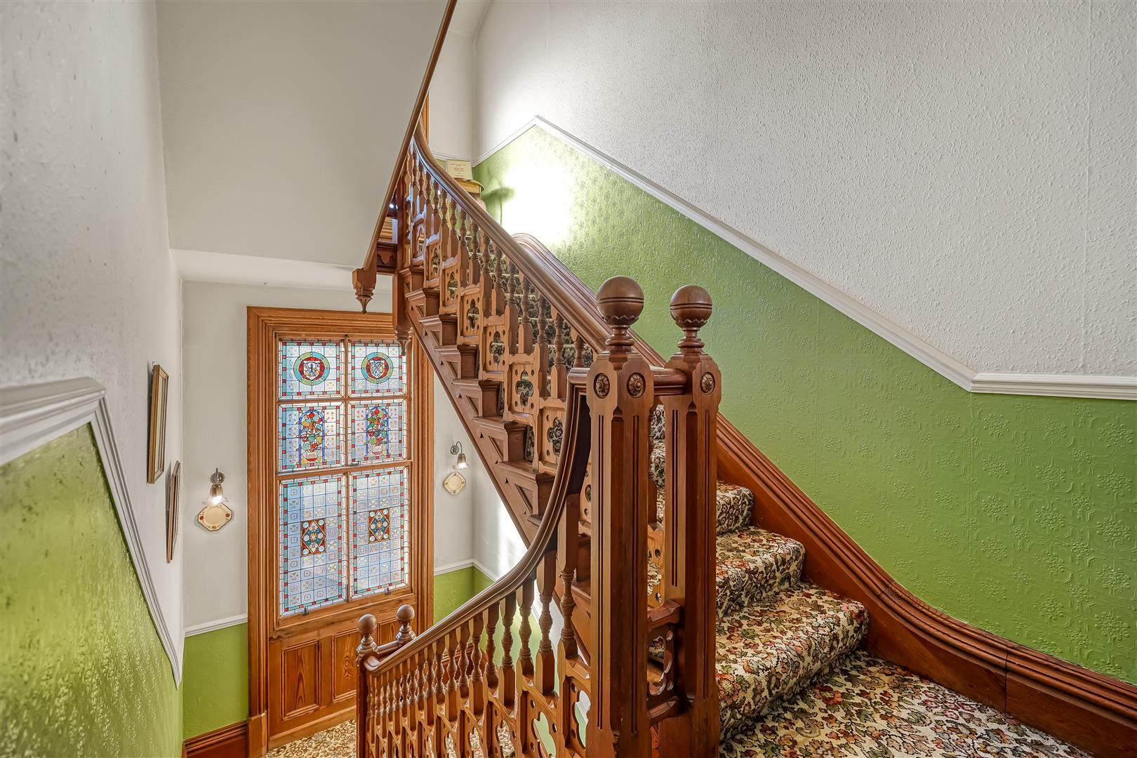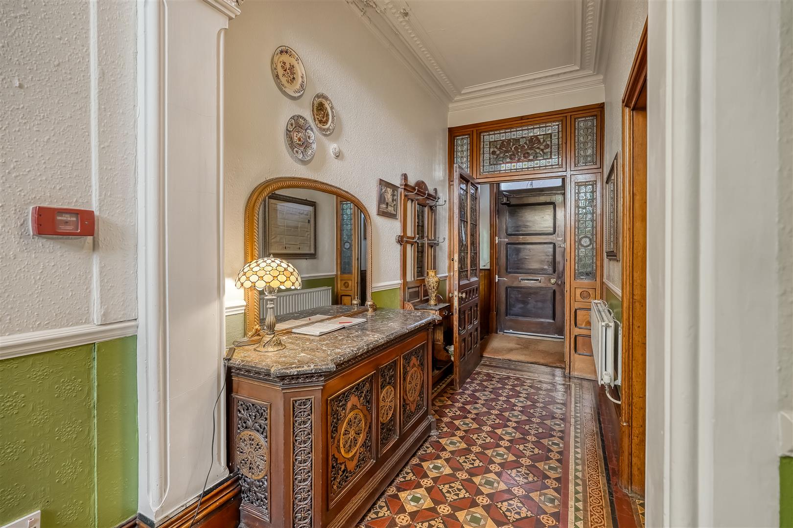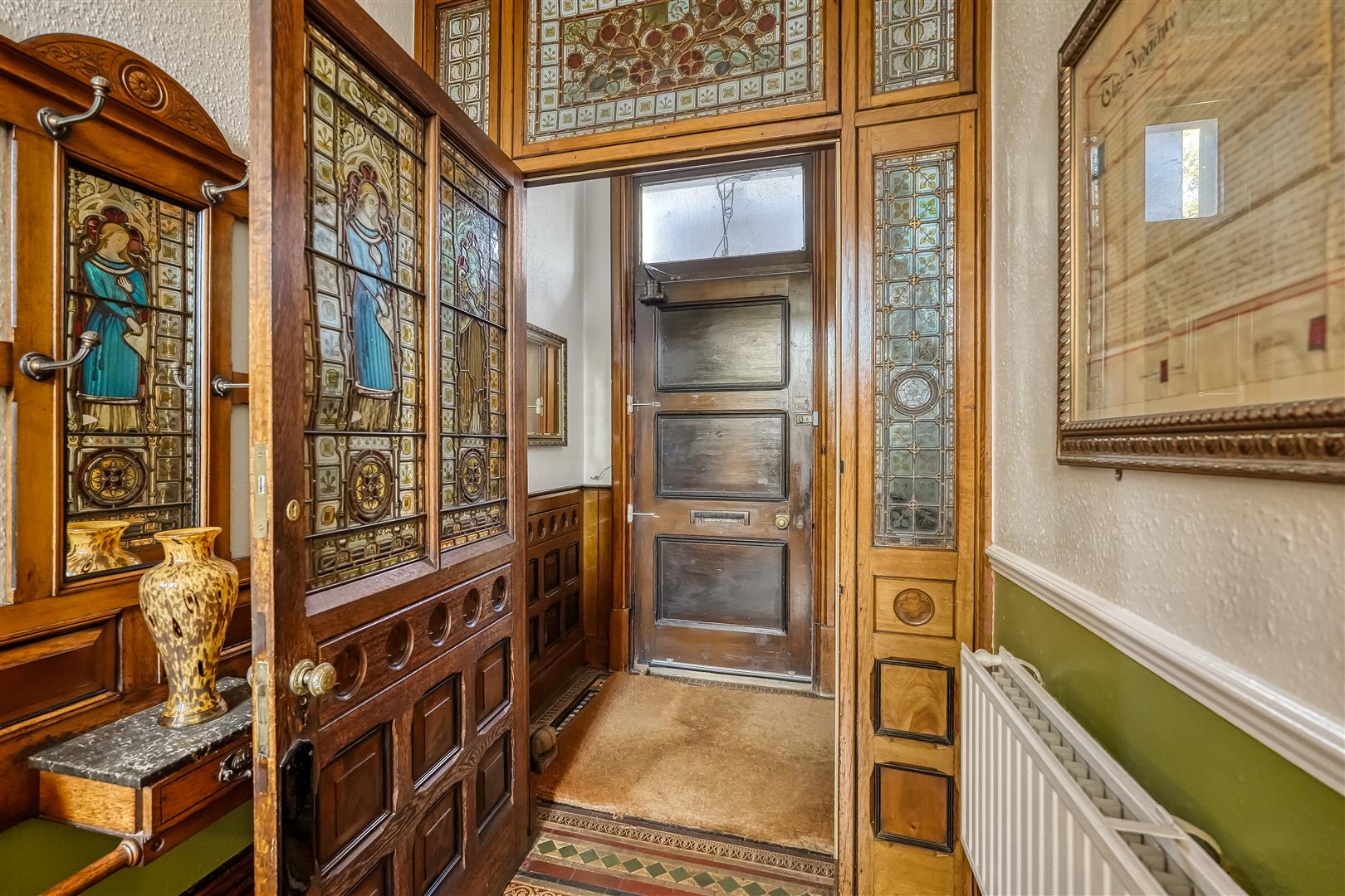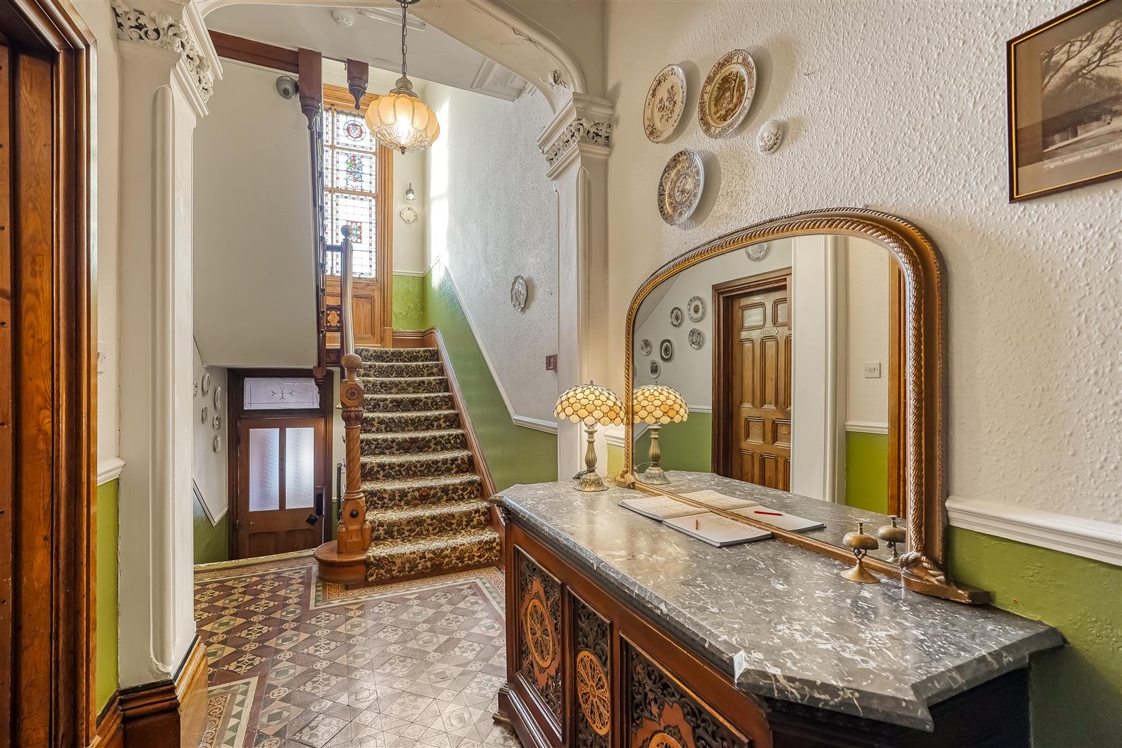 Spread across five generous floors, the property retains many of the original period features that add to its character and charm. Upon entering, you are greeted by a beautifully Victorian tiled hallway and one of the most striking detailed staircases you are ever likely to encounter. The presence of four exquisite marble fireplaces throughout the home enhances the elegance of the living spaces, while a stunning stained glass window, depicting the initials of the original owners, serves as a captivating focal point and a time in Darlington's rich railway heritage.