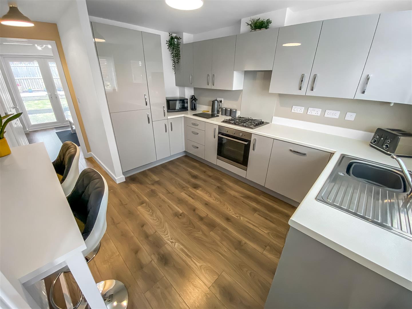 A beautifully presented mid-link property pleasantly situated on the popular "Elder Gardens" development to the Northern outskirts of Newton Aycliffe. Upon entering, you are greeted by a welcoming entrance vestibule that leads into a spacious kitchen/dining room. This area is equipped with built-in cooking appliances, a fridge/freezer, a washing machine, and a dishwasher, making it perfect for both everyday meals and entertaining guests. The living room, bathed in natural light, boasts French doors that open directly onto the beautifully landscaped rear garden, providing a seamless connection between indoor and outdoor living. The first floor comprises two generously sized bedrooms, with the second bedroom benefiting from built-in storage, ensuring ample space for your belongings. The bathroom/WC is conveniently located on this level, featuring a modern design that complements the overall aesthetic of the home. Externally, the property offers a driveway for one vehicle, enhancing convenience for residents. The rear garden is a true highlight, enclosed and landscaped, it overlooks tranquil woodland, creating a peaceful retreat for relaxation or outdoor activities. This home is beautifully presented throughout, featuring gas central heating to radiators and uPVC double glazed windows, ensuring comfort and energy efficiency. With its modern amenities and attractive location, this property is an excellent opportunity for those seeking a stylish and comfortable home in Newton Aycliffe.