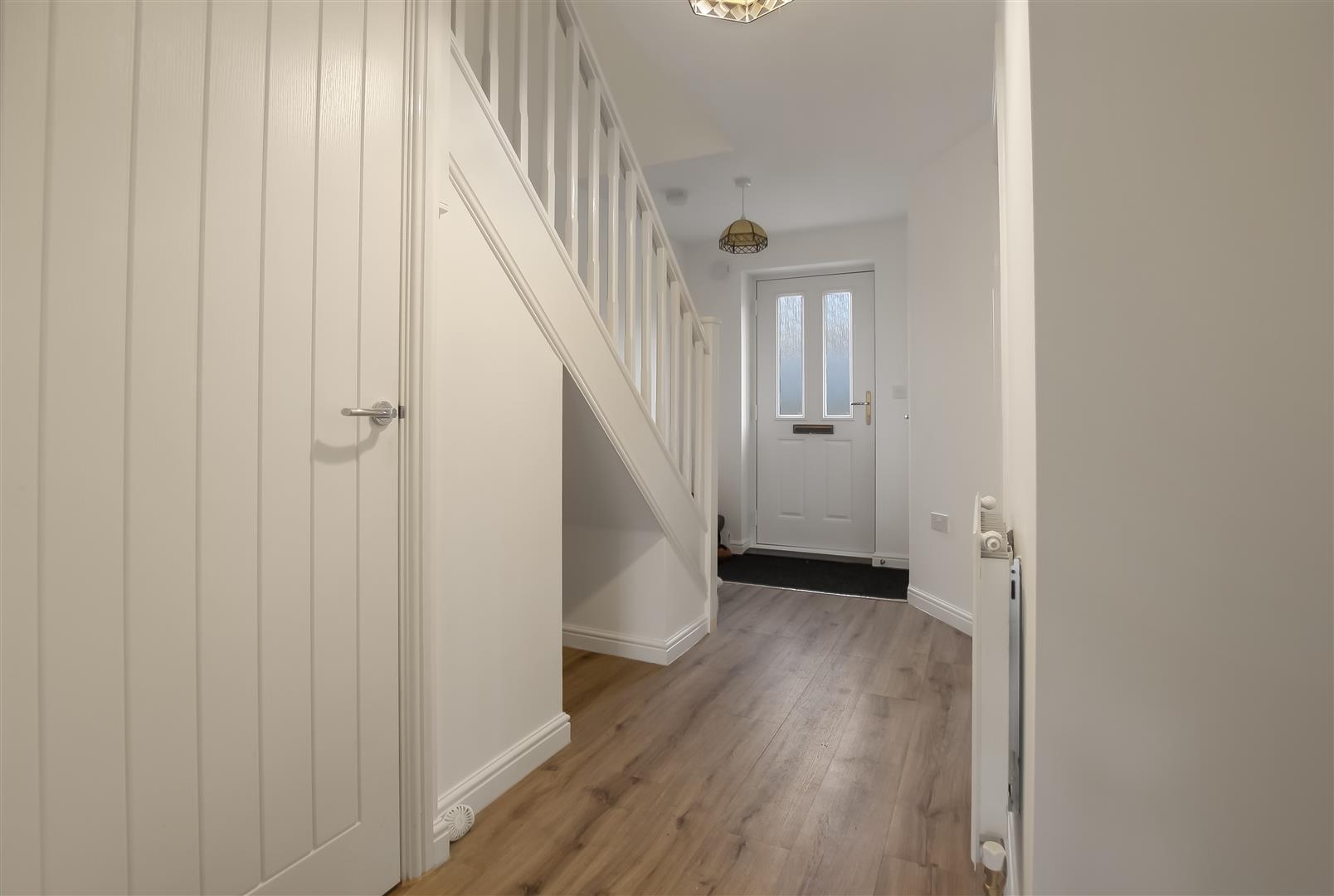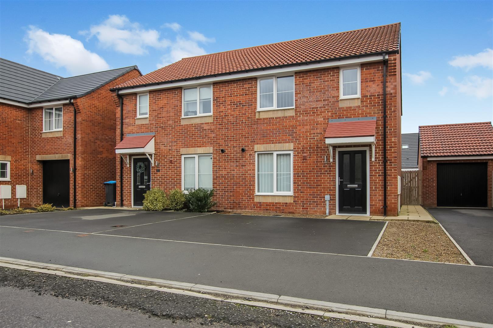 A modern three bedroomed semi detached family home providing well presented living accommodation benefitting from gas central heating and double glazing. The accommodation includes a reception hall, cloaks room/wc, kitchen/dining room fitted with a good range of wall and base units including integrated double oven, hob, fridge/freezer, dishwasher and washing machine. Spacious living room with French doors to the rear garden. To the first floor there are three bedrooms and a family bathroom fitted with a white suite with shower over the bath. Externally there are two off street parking spaces at the front. There is a low maintenance rear garden with patio and gravel terrace and gate leading to the side.