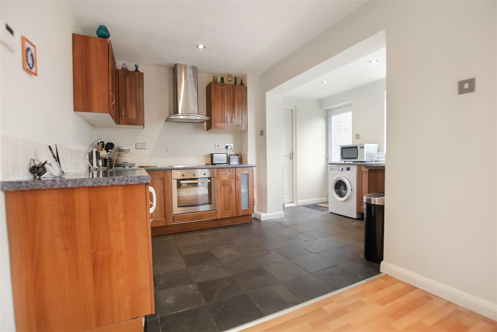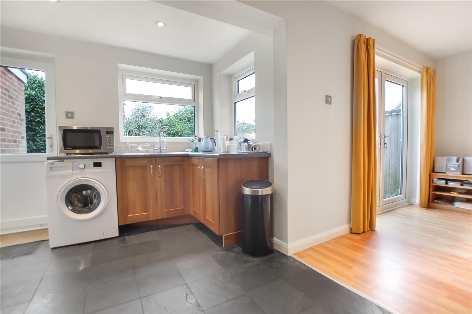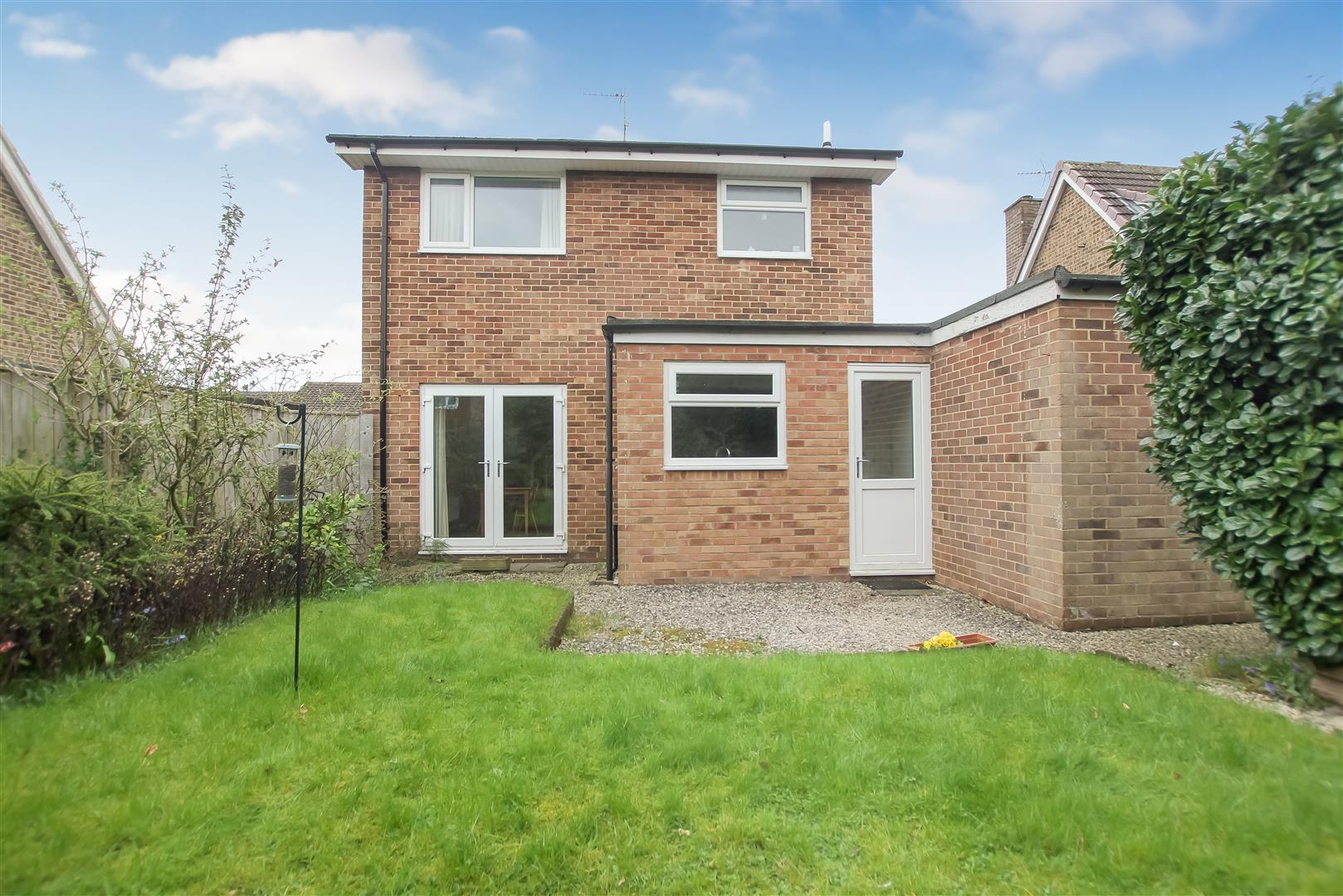 A well positioned three bedroomed detached family home providing spacious living accommodation together with driveway, garage and front and rear gardens. The accommodation includes a reception hall, cloak room/wc, spacious living room, lovely open plan kitchen/dining room. The kitchen area is fitted with wall and base units together with integrated oven and hob plus free standing fridge and washing machine. There is a door to the rear garden and to the garage. The dining area has French doors opening to the rear garden. To the first floor there are two double bedrooms each with built in wardrobes and there is also a single bedroom. The bathroom is fitted with a white suite including a shower cubicle. Externally there is a front garden and driveway providing off street parking for several cars and access to the garage. There is a mature rear garden with lawn and gravel patio seating areas. A gate leads to the front.