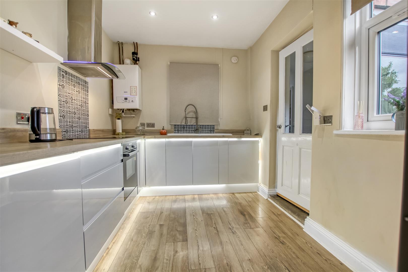 An extended three bedroomed family home providing versatile and spacious living accommodation with the extension creating ground floor annex style accommodation with a spacious living room/bedroom, shower room/wc/utility room and private entrance door. The property benefits from gas fired central heating and double glazing. The accommodation includes a reception hall with cloaks cupboard, living room with bay window to the front, dining room with breakfast bar and an open plan feel leading to the kitchen fitted with modern high gloss wall and base units including integrated ove, hob and dish washer. From the rear hall there is the annex accommodation including a large living room/bedroom with French doors to the rear garden and large boarded loft space with drop down ladder. There is also a shower room/wc, private front door and door to the rear garden. To the first floor there are two double bedrooms and a good sized bedroom three. The family bathroom is fitted with a white suite with shower over the bath. Externally there is a driveway to the front providing off street parking. The is a large mature south west facing rear lawn garden.