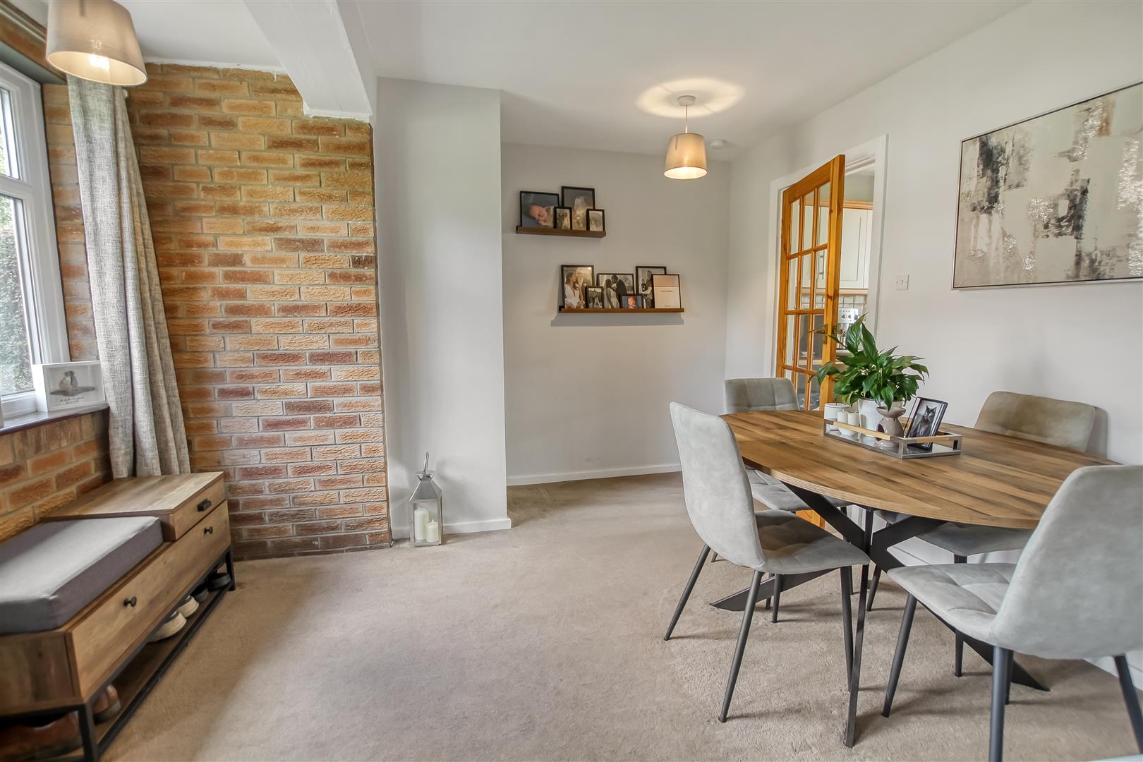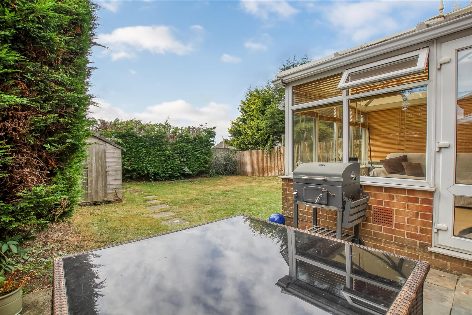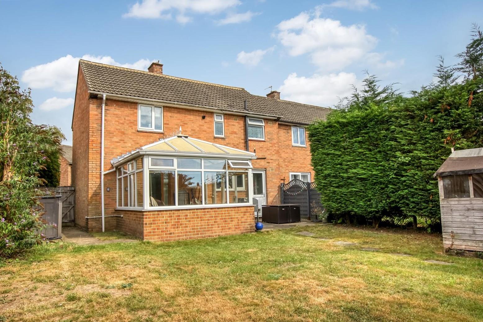 A well presented three bedroomed end of terrace house with a large rear garden situated in a cul de sac location overlooking a communal green area to the front. The property benefits from gas fired central heating and double glazing and the accommodation includes a spacious living room with French doors leading to the conservatory, dining room and kitchen/breakfast room fitted with a range of wall and based units together with integrated oven and five ring hob. There are three bedrooms all having built in wardrobe/storage cupboards. The family bathroom is fitted with a white suite with shower over the bath. On the landing there is an airing cupboard housing the boiler together with radiator. The loft is partially boarded and accessed via a drop down ladder. Externally there is a front garden and gate to the side leading to the good sized west facing rear garden.