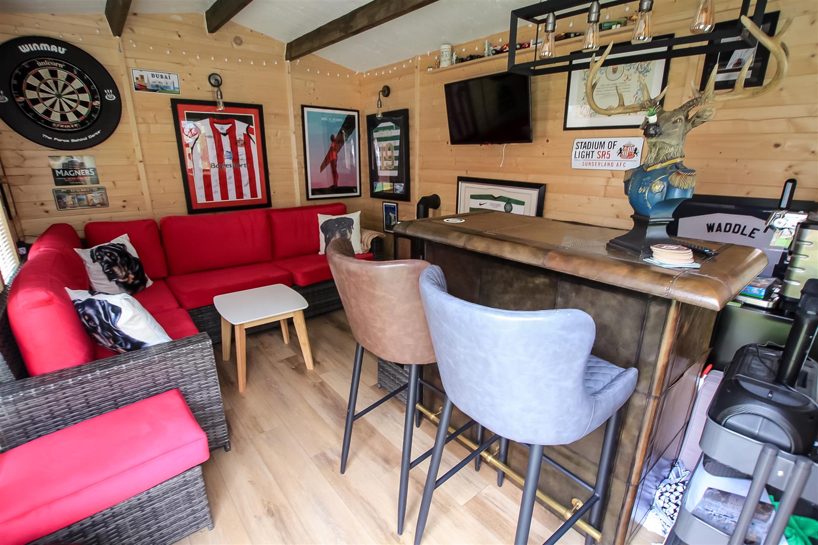 A beautifully presented, significantly improved and updated DETACHED family home enjoying a CORNER PLOT on this popular development in the Darlington Borough. The heart of the home is undoubtedly the fabulous open-plan fitted kitchen/dining room, complete with a central island and a host of integrated appliances, making it an ideal setting for family gatherings and culinary adventures. The ground floor also features a convenient study, perfect for those who work from home, as well as a utility room and a ground floor WC for added practicality. A large garden room with French doors invites natural light and seamlessly connects the indoor and outdoor spaces, enhancing the overall living experience. Upstairs, the principal bedroom is a true retreat, featuring built-in wardrobes and a private en-suite shower room/WC. Three additional bedrooms provide plenty of space for family or guests, with two of them sharing a well-appointed "Jack and Jill" en-suite shower room/WC. Bedrooms 2 and 3 have fitted drawers within the the wardrobes. Set on a generous corner plot, this property has been significantly improved and updated throughout with solar panels with battery storage, combination boiler, ensuring a contemporary living experience. The attractive enclosed side and rear gardens offer private outdoor space, perfect for enjoying sunny days or hosting barbecues. Rear garden includes includes a log cabin, fully equipped with power, lighting, and a TV point, offering versatile use such as a home office, studio, or hobby space. With an attached double garage with electric roller shutter doors, convenience is at the forefront of this home.